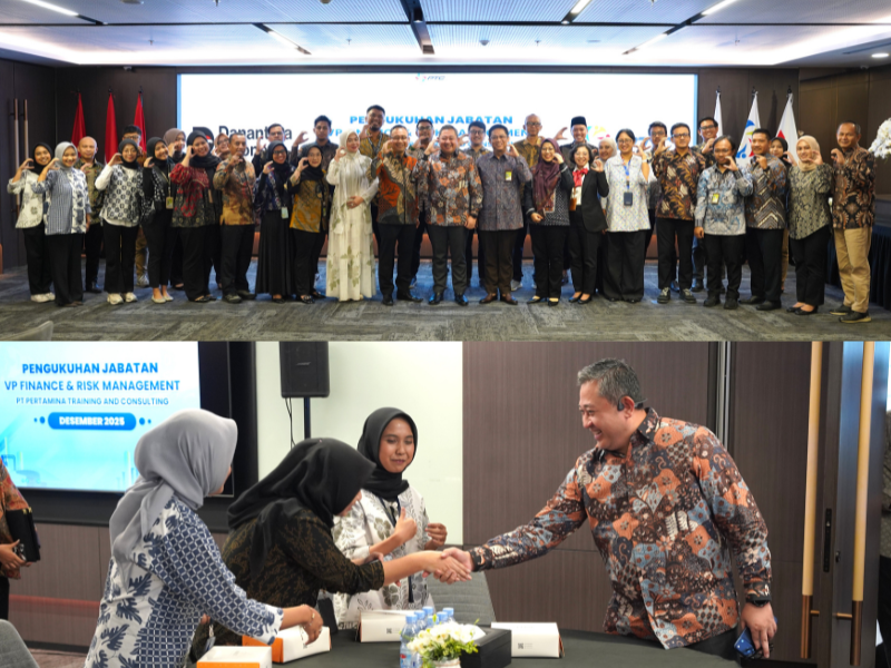 Jakarta, 24 Desember 2025 — PT Pertamina Training and Consulting secara resmi mengukuhkan Ibu Wuri Budhiarko sebagai Vice President Finance & Risk Management dalam acara pengukuhan jabatan yang diselenggarakan pada Rabu, 24 Desember 2025, bertempat di Sustainability Ballroom PTC, Lantai 4, Gedung Oil Centre, Jakarta Pusat. Acara pengukuhan ini dihadiri oleh jajaran Direksi PTC, VP Manpower Business, serta jajaran manajemen PTC sebagai wujud komitmen perusahaan dalam memperkuat tata kelola keuangan dan manajemen risiko yang adaptif, akuntabel, dan selaras dengan arah transformasi bisnis perusahaan. Pengukuhan jabatan ini menjadi momentum strategis bagi PTC untuk mempertegas peran kepemimpinan dalam memastikan pengelolaan keuangan dan risiko perusahaan berjalan secara prudent, terintegrasi, serta mampu menjawab tantangan bisnis yang semakin dinamis di tahun-tahun mendatang. Selain itu, kegiatan ini juga menegaskan pentingnya kesiapan individu dan kolaborasi lintas fungsi dalam mendukung keberlanjutan dan kinerja perusahaan secara berkelanjutan. Direktur Utama PTC, Bapak Muhammad S. Fauzani, dalam sambutannya menekankan pentingnya kesiapan diri dan kerja sama tim dalam menjalankan amanah kepemimpinan. “Tahun 2026 akan menjadi tahun yang lebih menantang. Oleh karena itu, saya mengajak seluruh insan PTC untuk terus memperbaiki dan memantaskan diri. Sejak pengukuhan pejabat sebelumnya, saya selalu menekankan bahwa organisasi tidak dapat berjalan sendiri. Baik di level Assistant Manager, Manager, maupun Vice President, kita harus bekerja sama dan saling menguatkan agar organisasi dapat mencapai tujuan yang telah ditetapkan,” ujar Muhammad S. Fauzani. Sementara itu, Ibu Wuri Budhiarko menyampaikan apresiasi atas kepercayaan yang diberikan serta komitmennya untuk memberikan kontribusi terbaik bagi perusahaan. “Terima kasih kepada Bapak Fauzan dan seluruh tim atas kepercayaan yang diberikan kepada saya. Semoga saya dapat memberikan kontribusi yang positif bagi PTC. Saya juga memohon dukungan dan kerja sama dari Bapak dan Ibu sekalian agar kita dapat berjalan sebagai satu tim, saling membantu, dan bersama-sama membawa perusahaan ke arah yang lebih baik,” ungkapnya. Melalui pengukuhan ini, PTC optimistis dapat memperkuat fungsi Finance & Risk Management sebagai strategic partner bisnis yang mendukung pengambilan keputusan, menjaga keberlanjutan usaha, serta mendorong akselerasi transformasi perusahaan secara berkelanjutan.